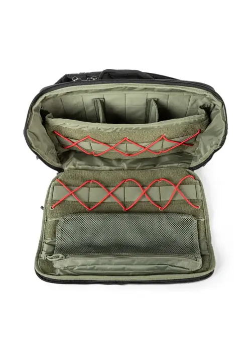 Рюкзак обладает характерным дизайном Center Line™ от 5.11 и включает задний отсек для скрытого ношения с системой HotPull. Кроме того, здесь предусмотрены петлевая панель и крепление для кобуры. Также имеется внутренний съемный сетчатый карман на передней панели, регулируемая система крепления на эластичных шнурах и съемные перегородки для удобной организации содержимого. Профессиональный комфорт обеспечивается подкладкой на задней панели, быстроразъемным одноплечевым ремнем, съемным грудным ремнем с CAM-застежкой, а также верхними и передними карманами на молнии.