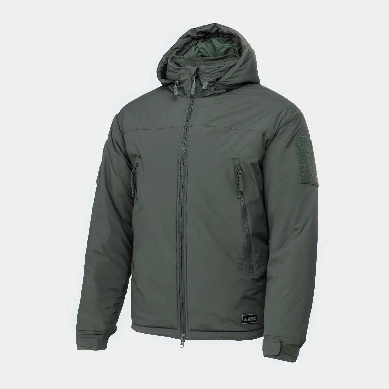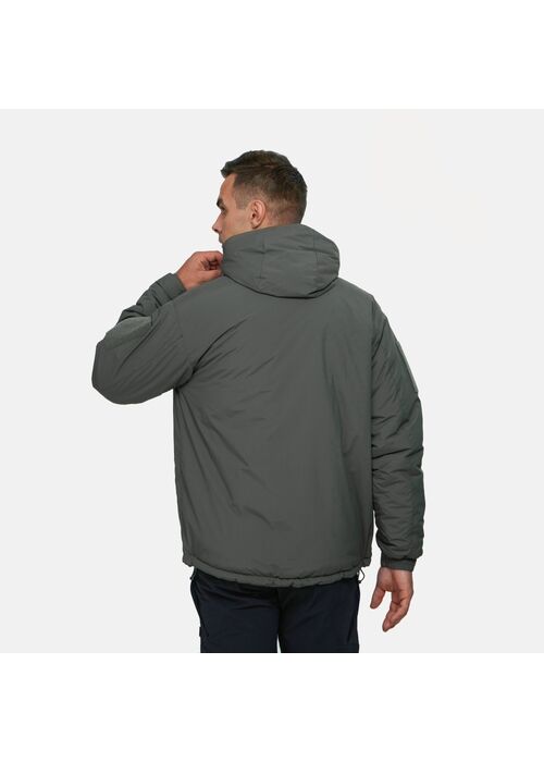 Утеплитель гидрофобный - быстро сохнет при намокании. Внешний нейлоновый слой защищает утеплитель от ветра и воды, при этом обеспечивает дышащий эффект. Воротник вмещает в себя капюшон, регулируемый шнурками, доступными из карманов на груди. Карман для капюшона застегивается на двухстороннюю молнию. Это важно для доступа к капюшону без необходимости снимать тяжелые перчатки. Мягкая флисовая подкладка капюшона повышает комфорт при ношении и предотвращает натирание. Два кармана на груди с флисовой подкладкой защищают руки от обморожений. Молнии на больших боковых карманах обеспечивают доступ даже при ношении тяжелых варежек.