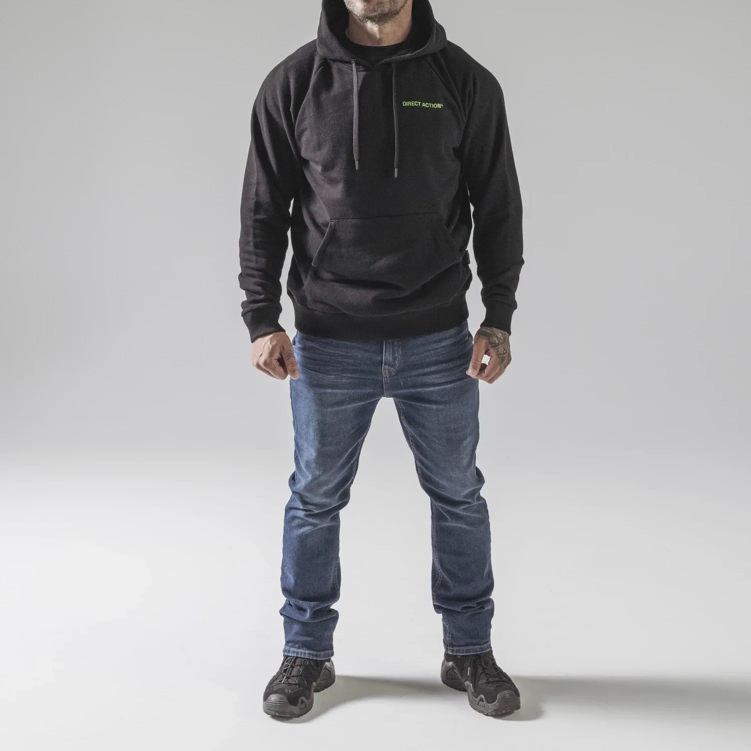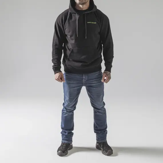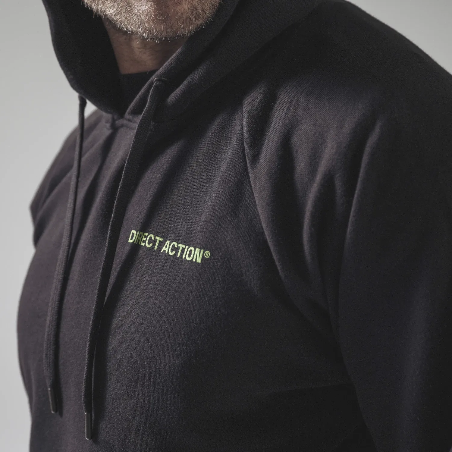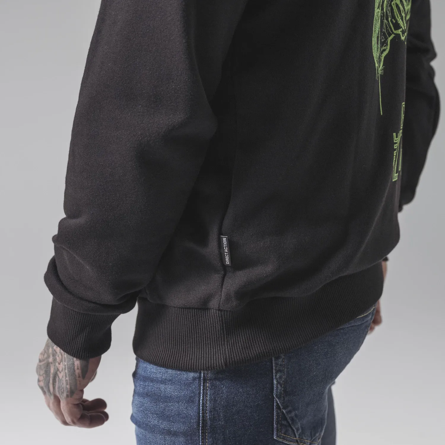 Толстовка с капюшоном в стиле милитари со скелетом на черном фоне.