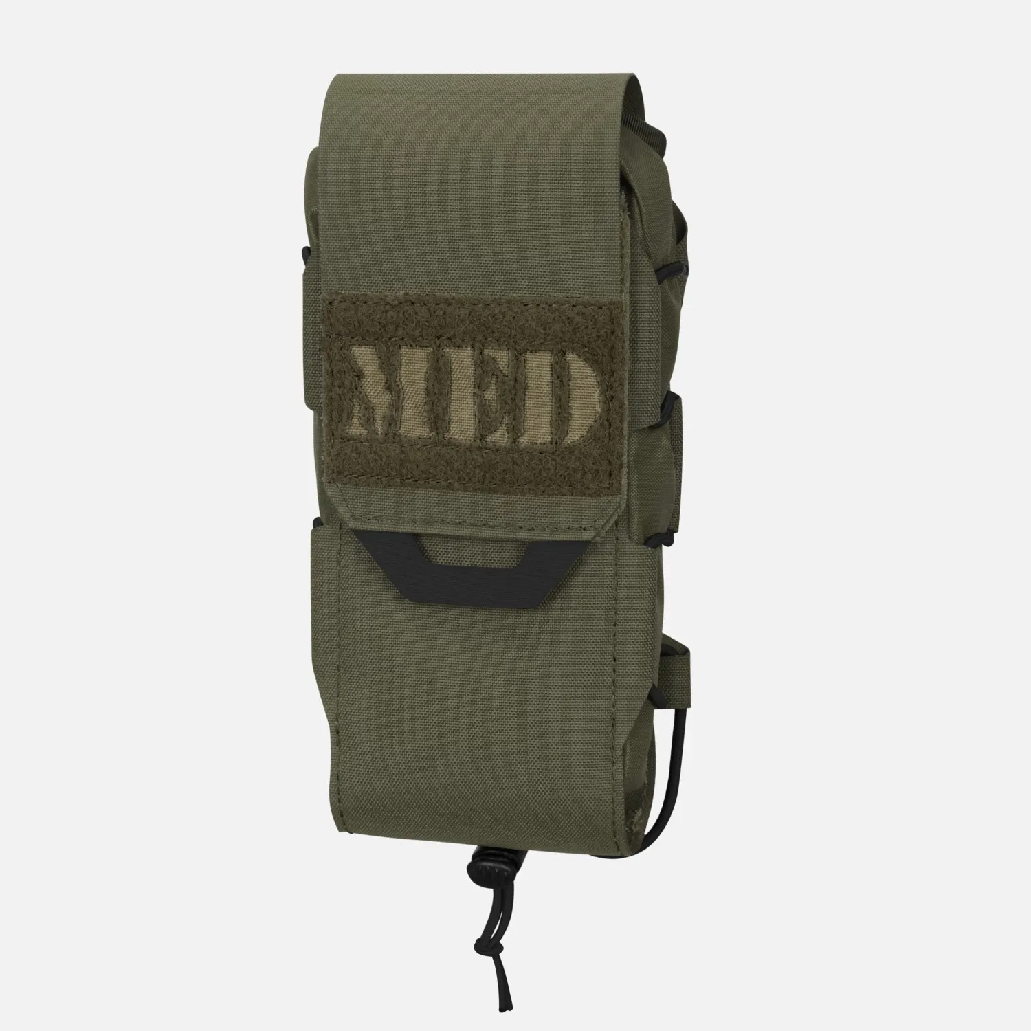Этот вертикальный рюкзак, состоящий из двух частей, предназначен для ношения на боковой панели нагрудного устройства или на поясе и занимает столько же места, сколько и подсумок для магазинов. Изготовлен в основном из фирменного ламината и 500D Cordura®. Вкладыш для медицинского оборудования можно быстро развернуть, всего лишь потянув за клапан, закрывающийся на липучку®. Все средства первой помощи надежно закреплены на месте с помощью эластичных петель. Внутренняя часть основного чехла покрыта петлей Velcro®, которая позволяет закрепить внутри наш чехол для ножниц. Подсумок не только совместим с любой модульной платформой MOLLE/PALS, но и может быть установлен на любой оружейный ремень шириной 45 мм.