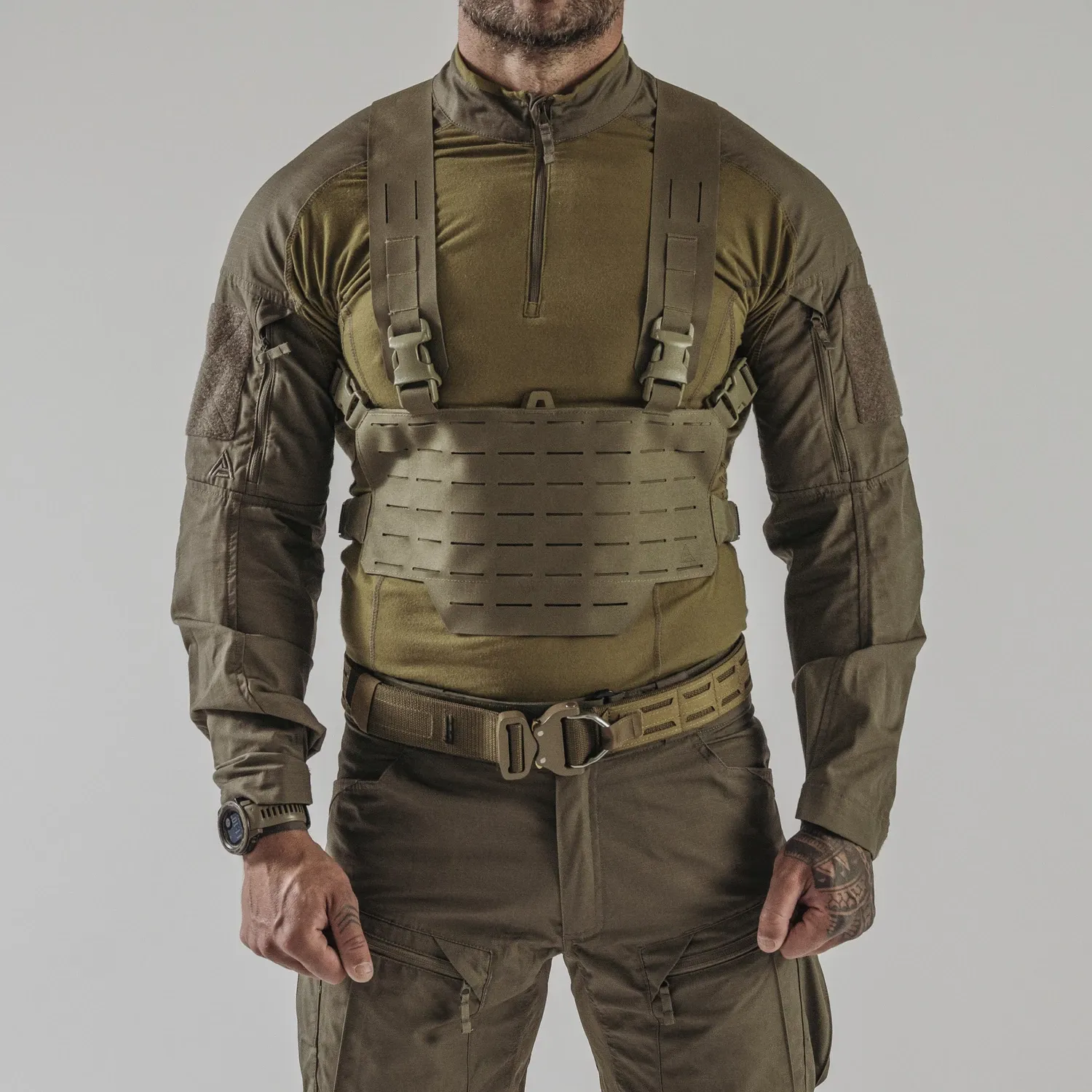 Самый маленький нагрудный ремень серии WARWICK®.. Изготовленная из фирменного ламината, эта установка покрыта модульной системой, совместимой с MOLLE/PALS, выполненной лазерной резкой. Это снаряжение представляет собой базовую модульную платформу, поэтому на его поверхности отсутствуют какие-либо дополнительные патроны или подсумки, что делает его максимально плоским и легким. В плоском внутреннем кармане, закрывающемся на липучку®, можно хранить карту, фотографии целей или любой другой небольшой плоский предмет. Установка может быть прикреплена непосредственно к одному из наших держателей пластин.