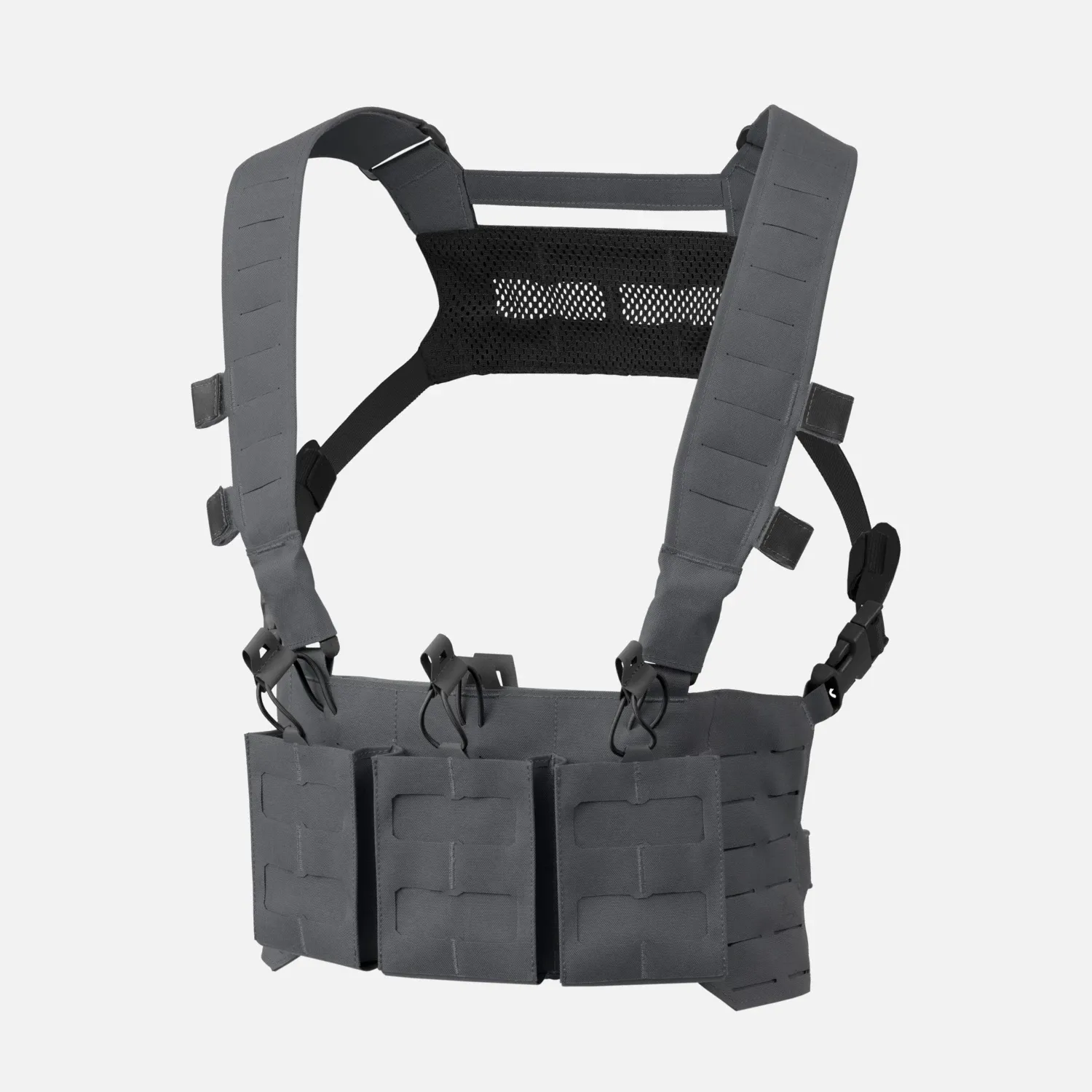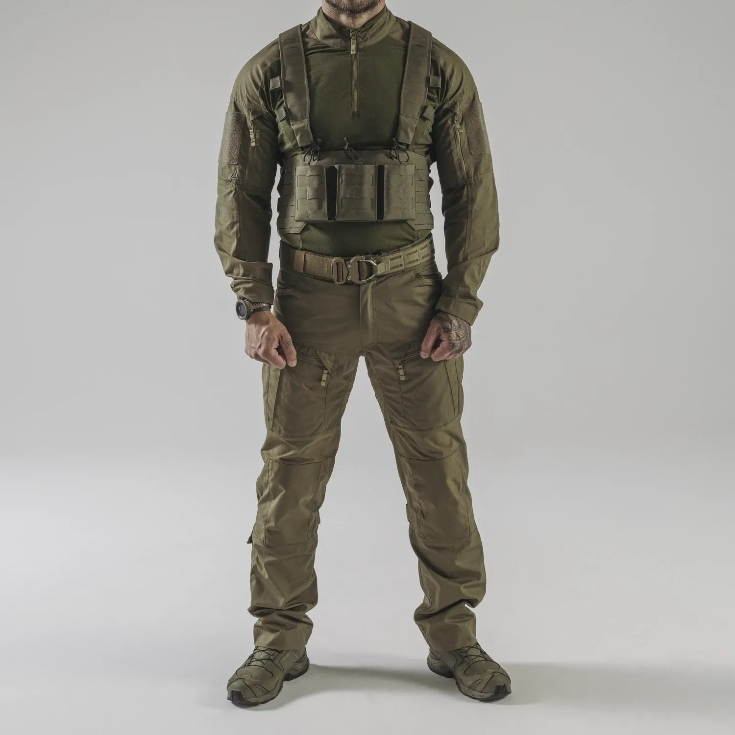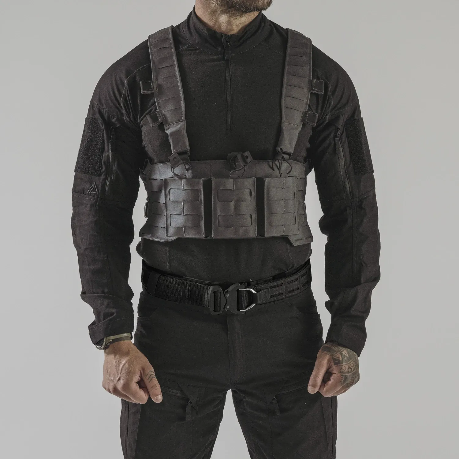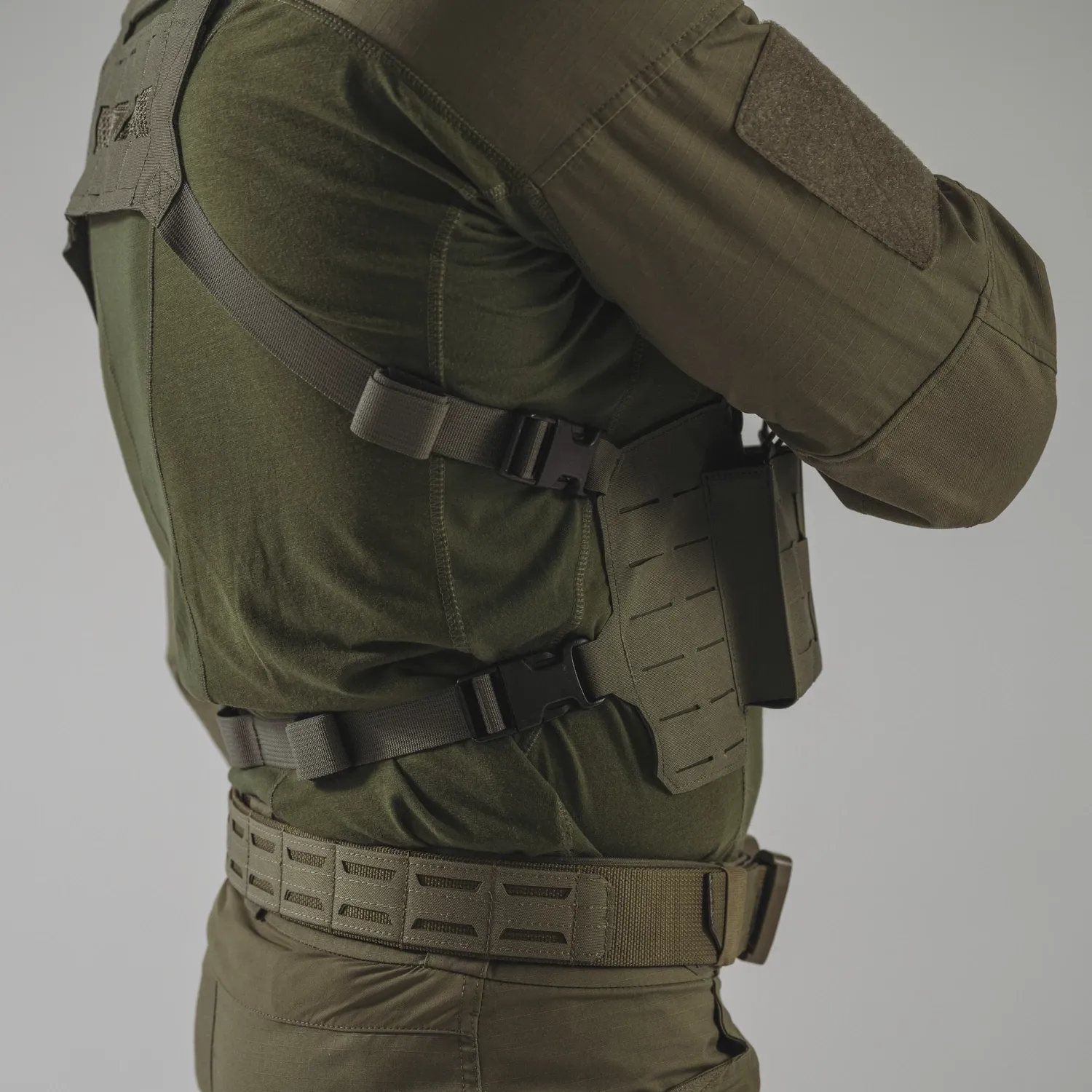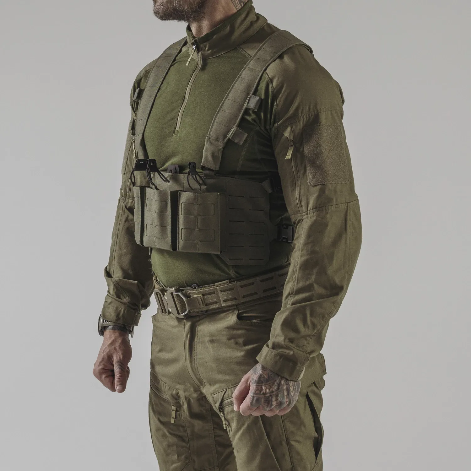 Curtiss® - это гибридное нагрудное устройство с тремя постоянно вшитыми подсумками для системных магазинов HK 308, а также для любого другого магазина .308WIN. Магазины крепятся сверху с помощью эластичных петель-банджи-шнуров. Функциональность нагрудного устройства усиливается боковыми вставками MOLLE PALS, которые позволяют прикреплять дополнительные подсумки, что позволяет настраивать их в соответствии с индивидуальными потребностями. Система крепления также встроена в переднюю часть карманов и в обвязку ремня безопасности, что еще больше повышает конфигурируемость оборудования. Ремень безопасности для переноски был слегка изменен, чтобы лучше распределять нагрузку и повышать комфорт пользователя. Эта модификация увеличивает вместимость снаряжения как по количеству, так и по весу груза, сохраняя при этом максимальный комфорт. Кроме того, в большом внутреннем кармане, закрывающемся на липучку, можно разместить плоские предметы.