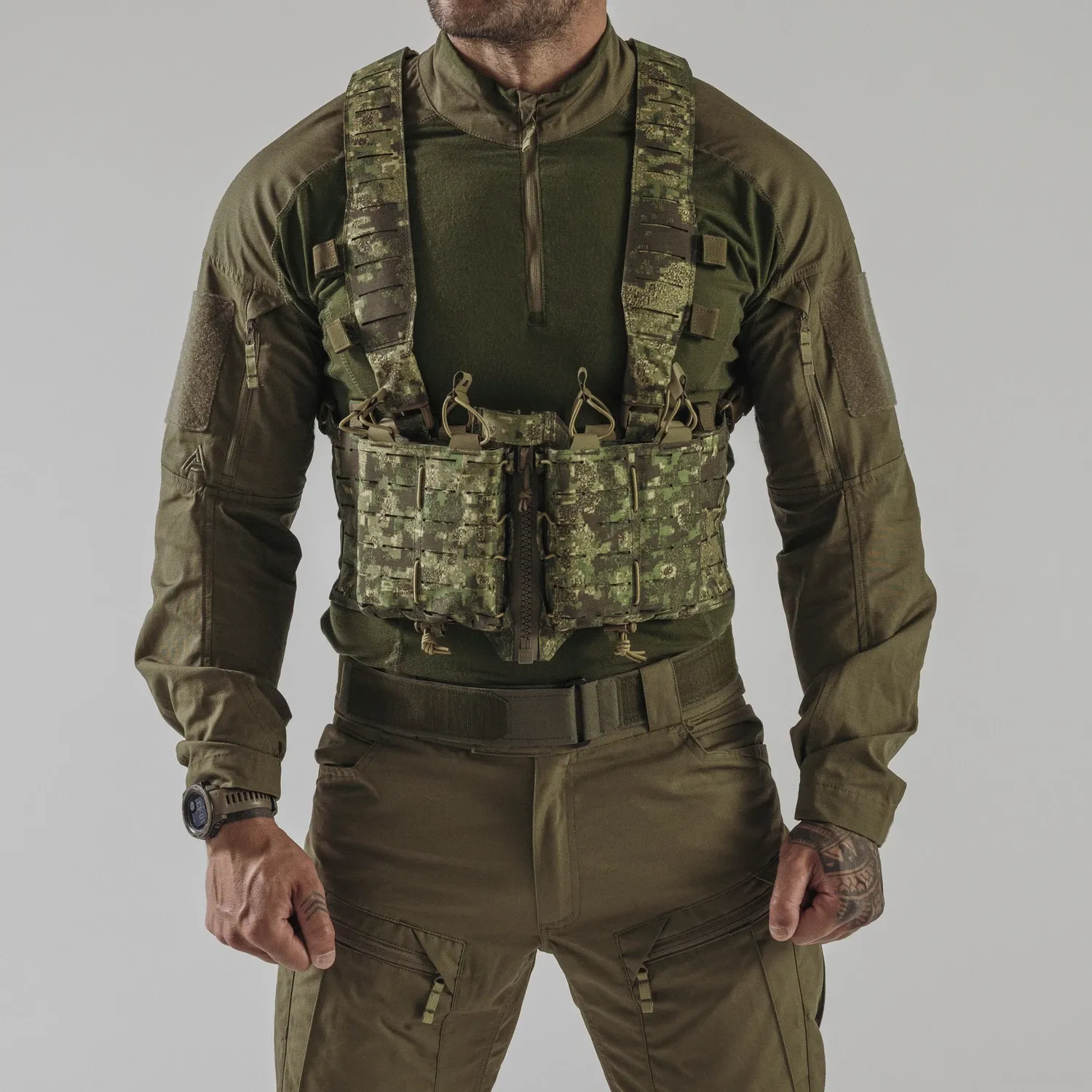 Нагрудное снаряжение TEMPEST® - это одно из наших снаряжений на молнии спереди.жение TEMPEST® - это одно из наших снаряжений на молнии спереди. Основанный на той же платформе, что и HURRICANE®, он был лишен большей части пришивных подсумков, чтобы получить гладкую, но в то же время легкую конструкцию. Единственными оставшимися подсумками являются два регулируемых подсумка для боеприпасов, предназначенных для установки в магазины AR/AK/SR. Вся поверхность снаряжения покрыта модульной системой, совместимой с MOLLE/PALS. На каждой панели имеется закрытый карман на липучке® для хранения плоских предметов, таких как карты, фотографии объектов и т.д. Благодаря съемным, полностью модульным плечевым ремням, TEMPEST® можно прикрепить непосредственно к одному из наших держателей пластин.