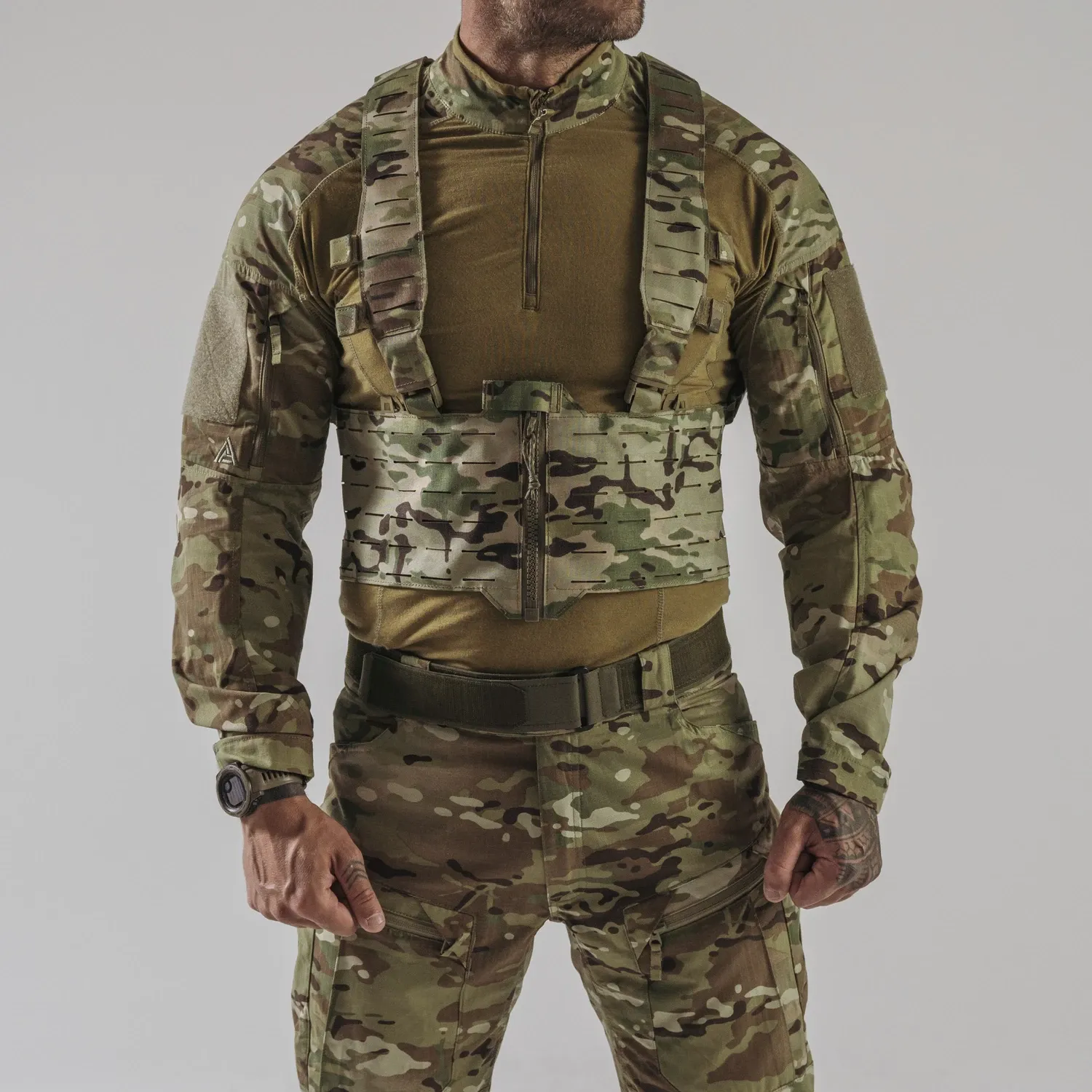 Одно из наших нагрудных приспособлений на молнии, наряду с HURRICANE® и TEMPEST®, нагрудный комплект WARWICK® с застежкой-молнией спереди - самый легкий, плоский и модульный из них. Застежка-молния спереди - идеальная базовая платформа для патрульного комплекта, особенно в сочетании с одним из наших рюкзаков. Это снаряжение изготовлено из фирменного ламината, без каких-либо дополнительных подсумков или патронов, только плоские карманы на каждой панели для карты, фотографии цели и т.д. Вся поверхность снаряжения покрыта модульной системой, совместимой с MOLLE/PALS. Благодаря съемным, полностью модульным плечевым ремням, нагрудный ремень может быть прикреплен непосредственно к одному из наших носителей пластин.