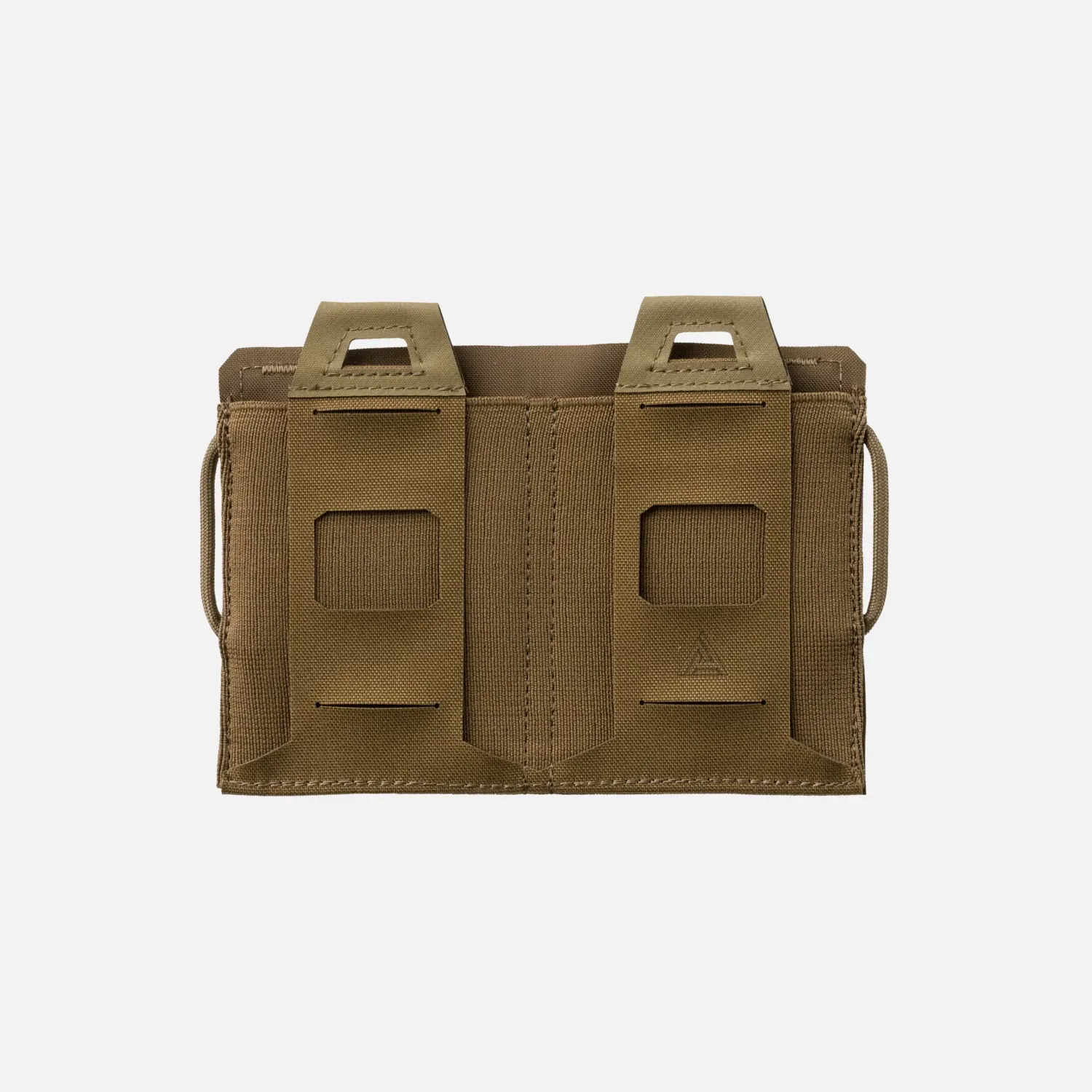 Двойная плоская подсумочная сумка на резинке - это двойная плоская подсумочная сумка, предназначенная для дополнительного снаряжения. Ее плоская и легкая конструкция минимально увеличивает вес снаряжения, позволяя при этом носить дополнительные магазины, гранаты или другое снаряжение. Благодаря своему дизайну и используемым материалам (сочетание ламината и резины), он занимает минимум места, когда пустует. Подсумок крепится с помощью системы MOLLE/PALS, а благодаря петлям из паракорда его также можно носить на оружейном ремне шириной до 45 мм.