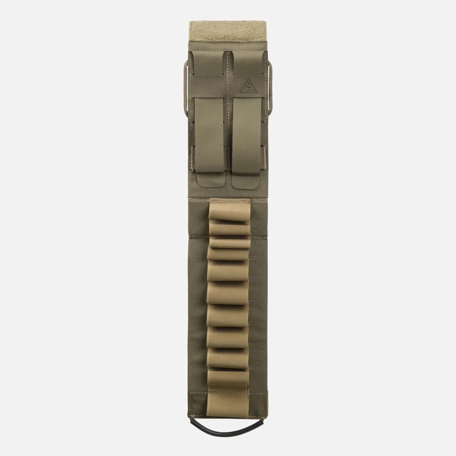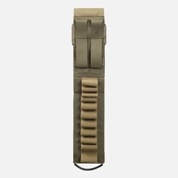 ДЕРЖАТЕЛЬ для патронов для дробовика - это универсальный чехол, который позволяет носить с собой 25 патронов для дробовика 12GA. позволяет носить с собой 25 патронов для дробовика 12GA. Снаряды крепятся на эластичных лямках-петлях, которые обеспечивают быстрый доступ к ним. Сумка изготовлена из ткани Cordura® 500D и имеет жесткую расширяемую конструкцию, при этом корпуса разделены на три секции. Подсумок - отличный выбор не только для операторов, использующих дробовик в качестве основного оружия, но и для нарушителей, поскольку он позволяет им носить большое количество патронов в компактной и простой в использовании форме. Подсумок не только совместим с модульной системой MOLLE/PALS, но и, благодаря специально разработанным петлям из паракорда, может быть закреплен на любом оружейном ремне калибра 45 мм.
