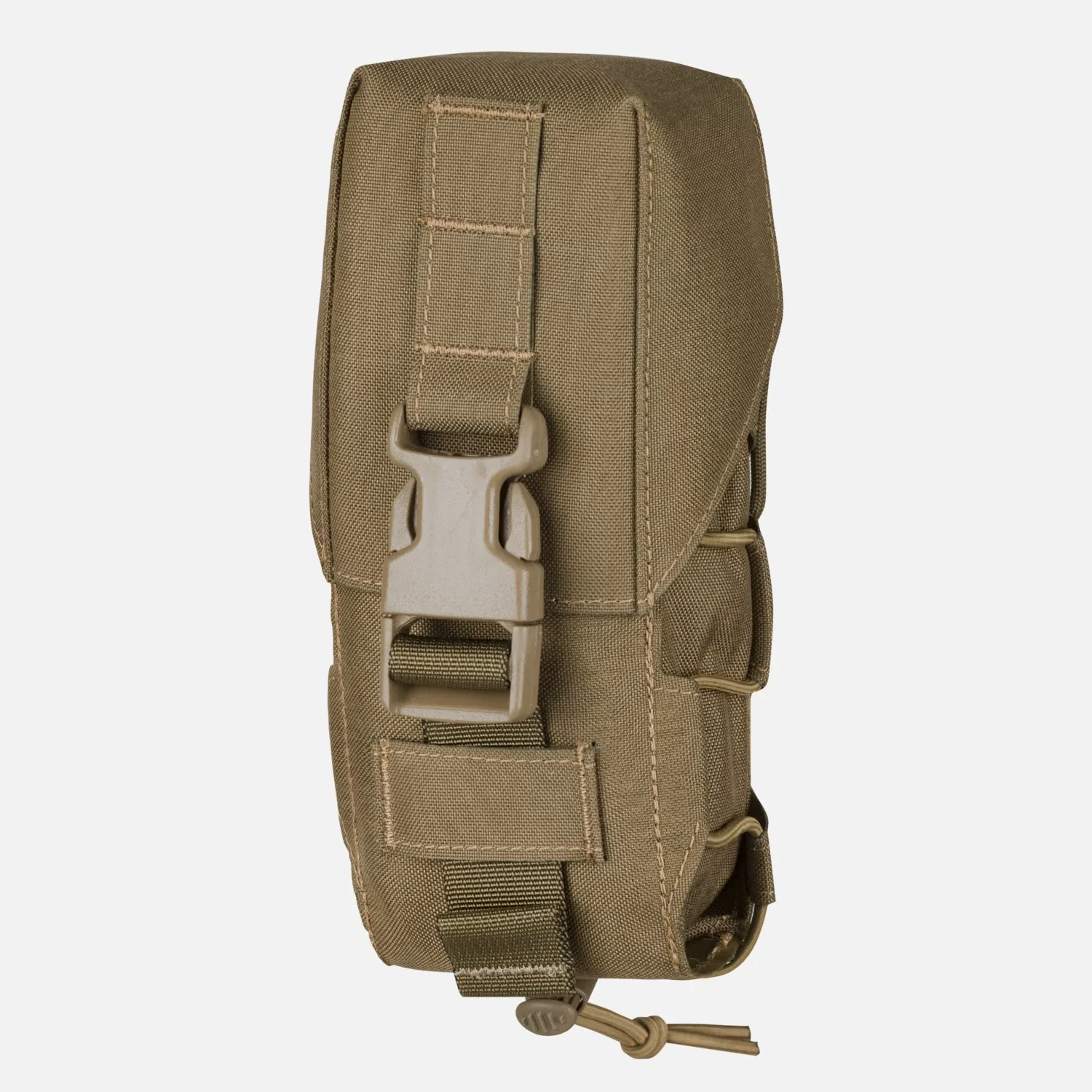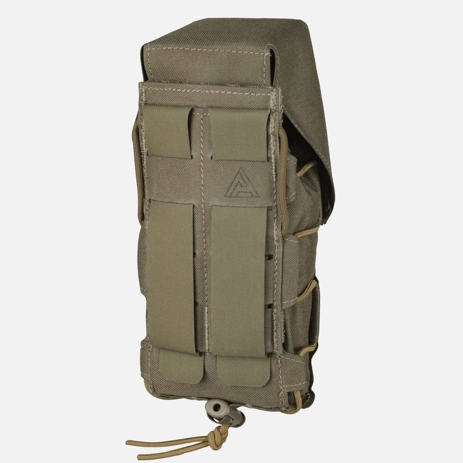 Специальная двойная подсумочнаумочная сумка для винтовок в стиле AR. Клапан полностью защищает магазины от внешних воздействий. Застежка-пряжка гарантирует легкое и бесшумное открывание. Встроенная внутренняя система регулировки с помощью эластичного шнура позволяет быстро регулировать объем подсумка при использовании двойного магазина или одного магазина для одного человека. Регулируемый по высоте клапан может быть полностью отсоединен, превращая подсумок в магазинную сумку с открытым верхом. Подсумок не только совместим с модульной системой MOLLE/PALS, но и благодаря специально разработанным петлям из паракорда может быть закреплен на любом оружейном ремне калибра 45 мм. Сумка предназначена в основном для переноски двух магазинов типа AR15, поэтому в нее также поместятся предметы аналогичного размера.