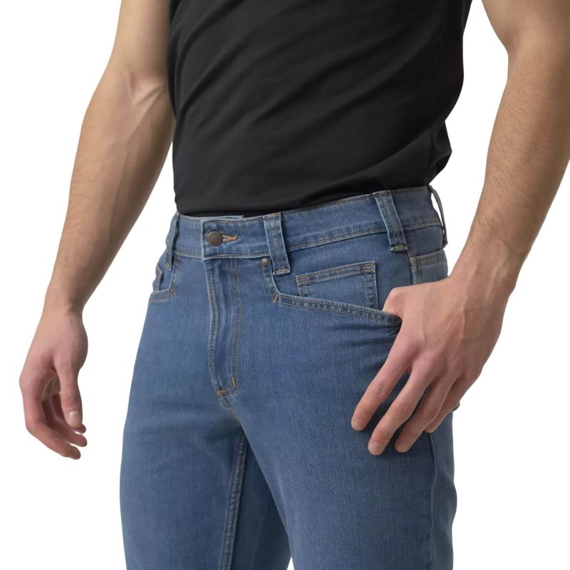 Джинсы Treadstone — это классические брюки, подходящие для повседневного использования, городских приключений и стрелковых тренировок. Они изготовлены из слегка эластичного материала DuraDenim, в котором волокна денима переплетены с волокнами Cordura, что повышает прочность и долговечность брюк, не влияя на их вес.