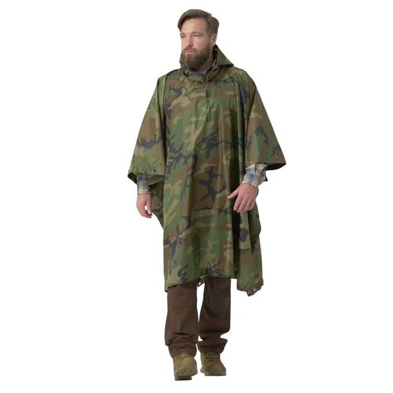 Пончо U.S. Model — это дождевое пончо военного образца, изготовленное из 100% полиэстера с рипстопным плетением, которое обеспечивает лёгкое и практичное решение для защиты от дождя. Этот материал обладает исключительной устойчивостью к разрывам и воздействию воды, что делает пончо идеальным для использования в сложных погодных условиях.
