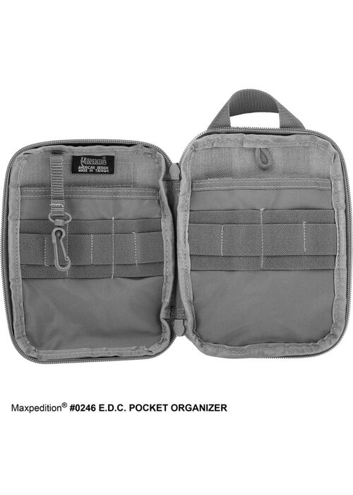 EDC Pocket — это компактный органайзер от Maxpedition, предназначенный для работы или повседневного ношения в условиях города. На нём можно с лёгкостью размещать такие аксессуары как ручки и фонари или иные небольшие аксессуары для работы и отдыха. Имеет небольшие габариты и может крепиться на ремень как в вертикальном, так и в горизонтальном положении. Также может монтироваться на амуницию и выполнять роль подсумка. Пошит из нейлоновой ткани плотностью 1050D и имеет специальную тефлоновую пропитку, исключающую проникание влаги внутрь органайзера. Застежка – прочная молния по периметру. Для прошивки стыков использована композитная нейлоновая нить. Для прочности все швы дополнительно проклеены. Паракордовые бегунки позволяют открывать органайзер одной рукой.