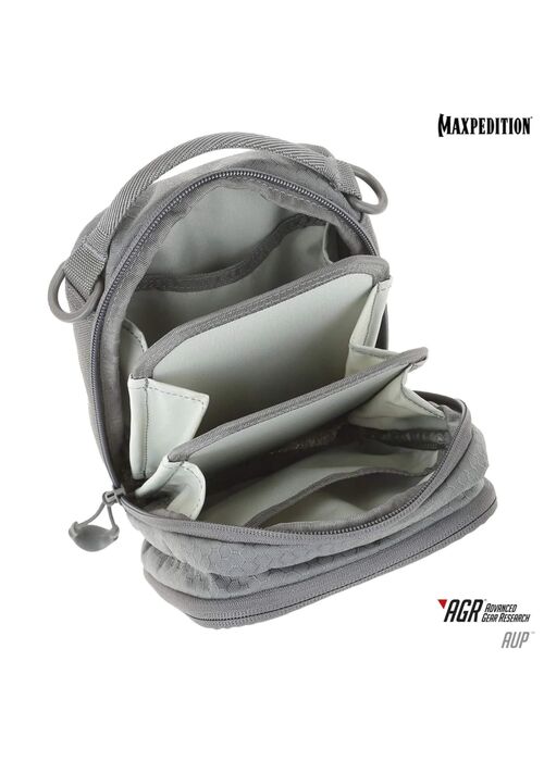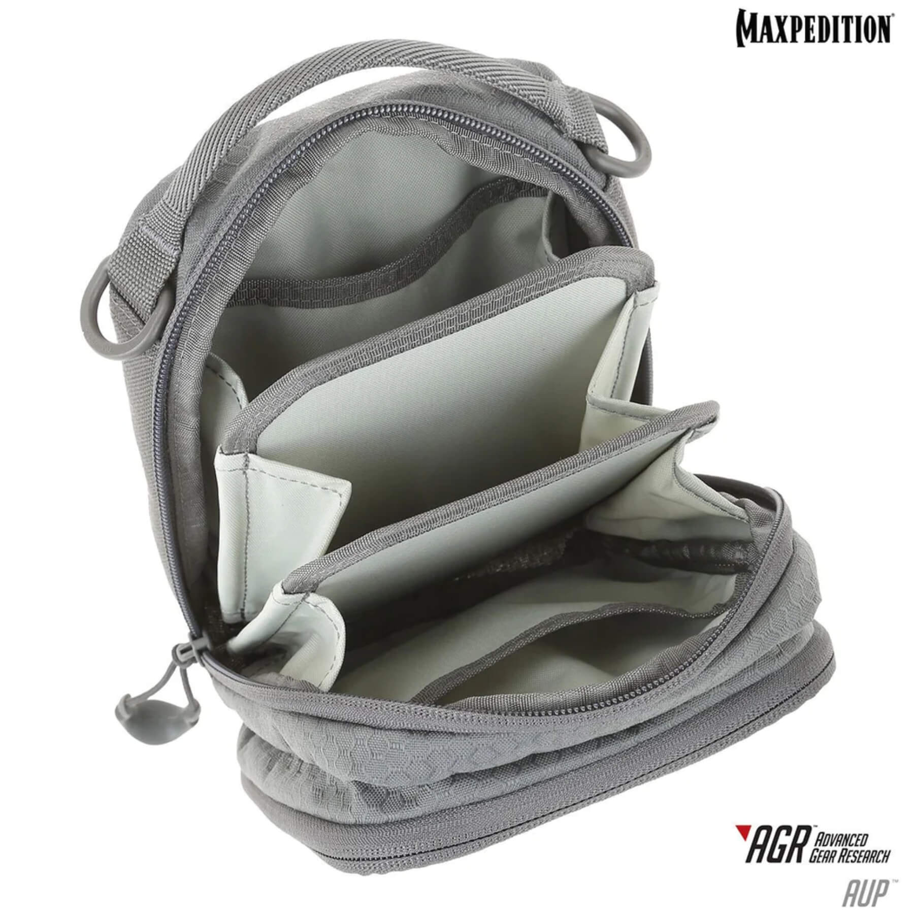 Maxpedition AUP™ – подсумок-гармошка, идеально подходящий для ежедневного использования. Размер подсумка позволяет с одинаковым комфортом разместить его на поясе, прикрепить к вашему снаряжению или использовать на плечевом ремне в качестве небольшой сумке. Maxpedition AUP™ комплектуется двумя полимерными клипсами – TacTie PJC5, являющимися новой ступенью эволюционного развития строп MOLLE. Кроме того, AUP™ имеет ручку для переноски и D-кольца для крепления плечевого ремня.