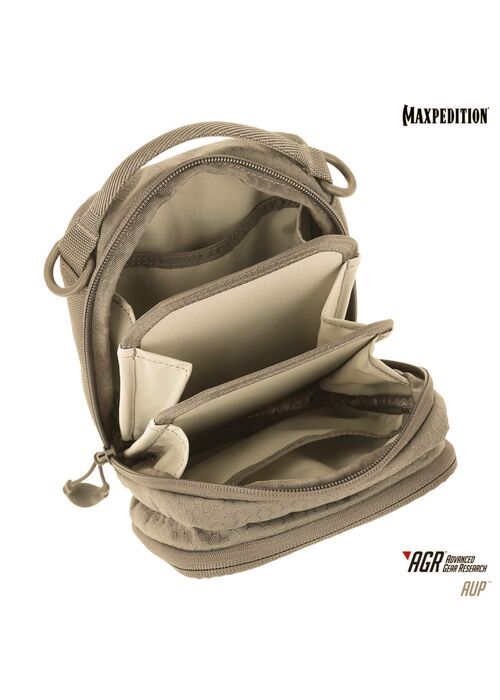 Maxpedition AUP™ – подсумок-гармошка, идеально подходящий для ежедневного использования. Размер подсумка позволяет с одинаковым комфортом разместить его на поясе, прикрепить к вашему снаряжению или использовать на плечевом ремне в качестве небольшой сумке. Maxpedition AUP™ комплектуется двумя полимерными клипсами – TacTie PJC5, являющимися новой ступенью эволюционного развития строп MOLLE. Кроме того, AUP™ имеет ручку для переноски и D-кольца для крепления плечевого ремня.