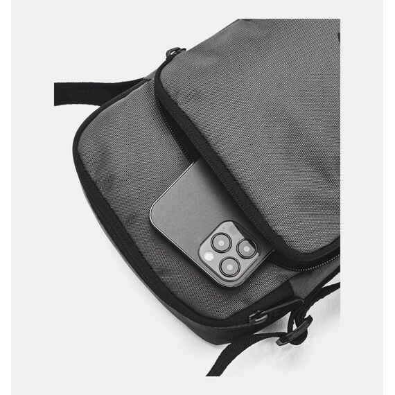 Компактная и невесомая сумка которая вмещает всё необходимое. Два кармана на молнии и один накладной карман позволяют быстро найти нужные вещи. Благодаря технологии UA Storm, которая отталкивает воду, содержимое остаётся сухим.